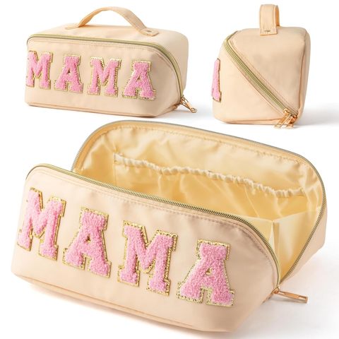 Neceser de maquillaje con letras personalizadas al por mayor, neceser impermeable de nailon de gran capacidad, neceser de viaje portátil con cremallera, Neceser de maquillaje para mujer