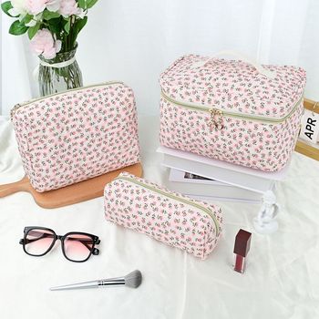 Bolsa de maquillaje de gran capacidad Floral personalizada 2025, bolsa de almacenamiento Simple de retazos, conjunto de tres piezas portátil fresco, bolsa de maquillaje para mujer