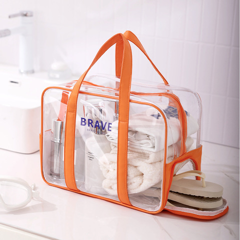 カスタマイズ可能なロゴ大容量旅行ポータブル収納バッグドライウェットセパレート透明化粧品PU防水ジッパー閉鎖