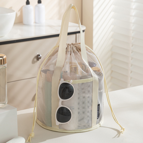 韓国夏新しいビーチ収納バッグカジュアルハンドバッグかわいい化粧品バッグ通気性メッシュ防水ポリエステル旅行用ウォッシュバッグ
