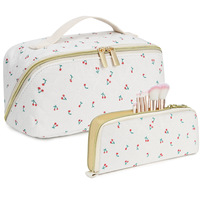 新スタイルカスタムロゴ花柄メイクバッグ毎日旅行ポータブル収納バッグ大容量アコーディオンメイクポーチ2ピースセット