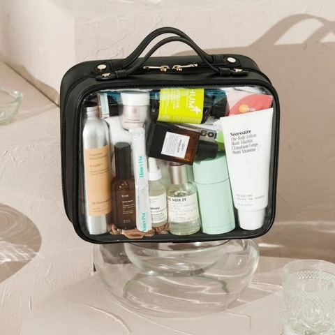 กระเป๋าเมคอัพสำหรับผู้หญิงกระเป๋า PVC สำหรับใส่เครื่องสำอางที่เก็บของเครื่องหนังมีความจุขนาดใหญ่แบบพกพาสำหรับงานตามสั่ง